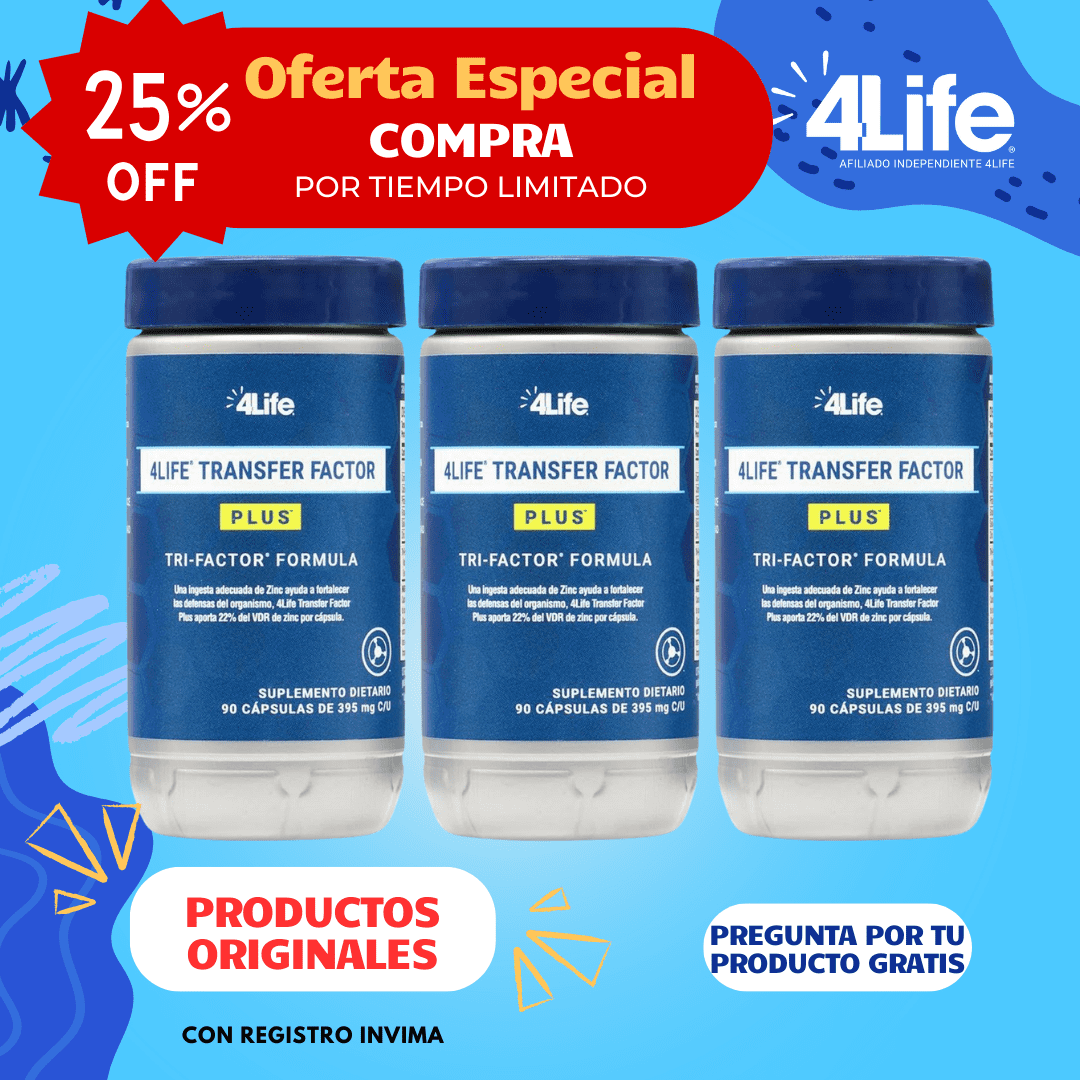 ¡El producto más vendido en 4Life Colombia! Un suplemento dietario ideal para promover el bienestar general de tu organismo gracias a su exclusiva fórmula con Tri-Factor® Formula (mezcla de proteína de calostro bovino y yema de huevo) y zinc.